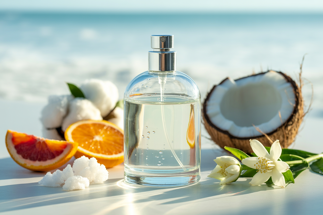- Hot weather, summer, and high-humidity climates: Heavy florals and gourmands amplify in heat and can become cloying. Fresh, citrus, and marine compositions stay bright and breathable when temperatures rise — the molecular volatility that defines “freshness” works with warm weather, not against it.